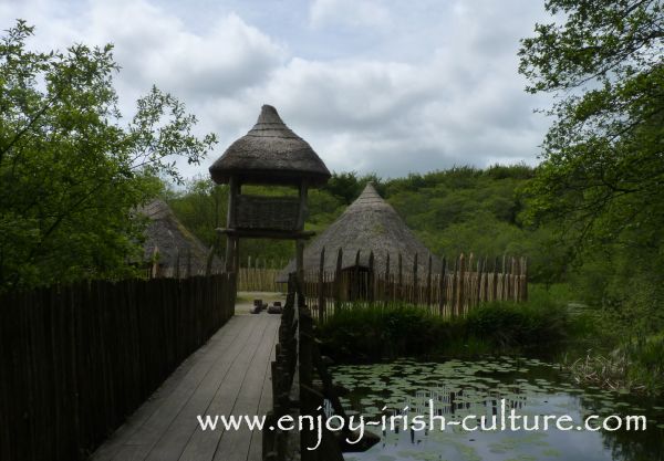Many of these sites would have had a surrounding palisade of wooden stakes like the reconstructed crannog at Craggaunowen in County Clare on the photos on this page.