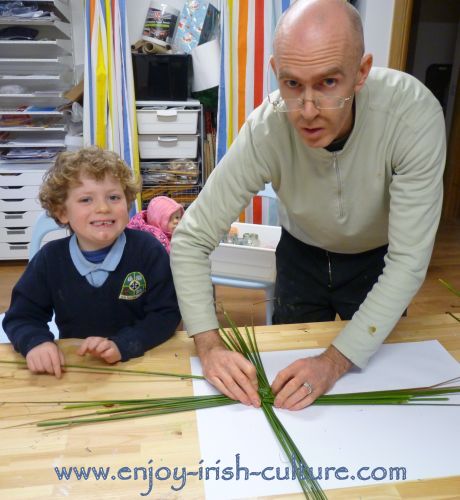 Now you are more than half way there making your Brigid's Cross. Join us here to continue and finish it off using only rushes, no man-made materials!