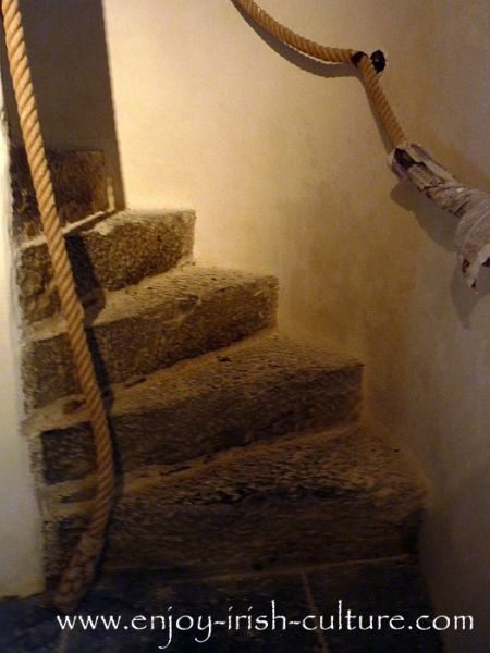 This one at Annaghdown Castle is left-handed, meaning the owner could easily defend it by sword from the top, holding the sword in his left hand.