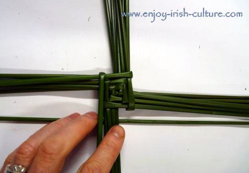 Rotate the cross clockwise and repeat the same procedure on the remaining sides of your Saint Bridget's cross.